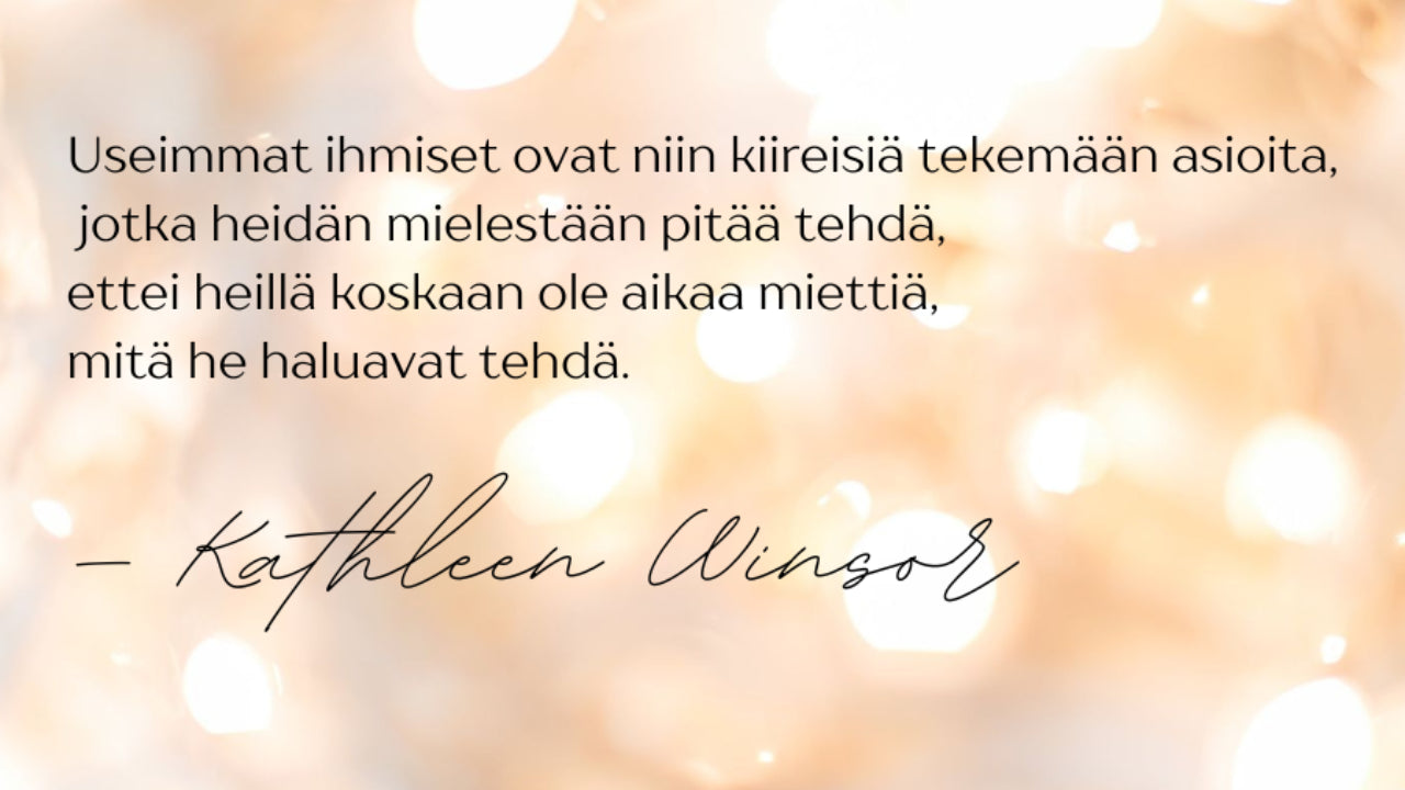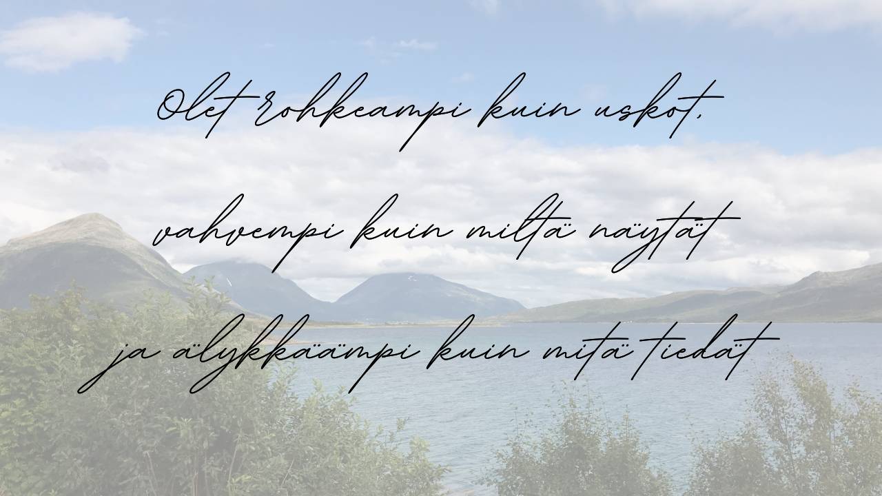 "Sinä upea Sisukas ihminen, milloin opit. Ettei sinun tarvitse aina olla niin ahkera? Kun vain annat itsellesi luvan olla vähemmän. Olet niin paljon enemmän"